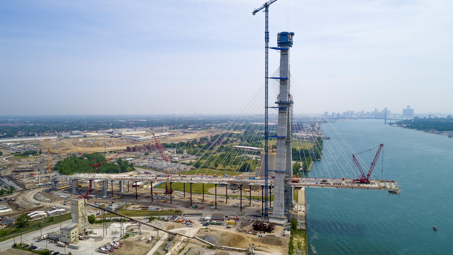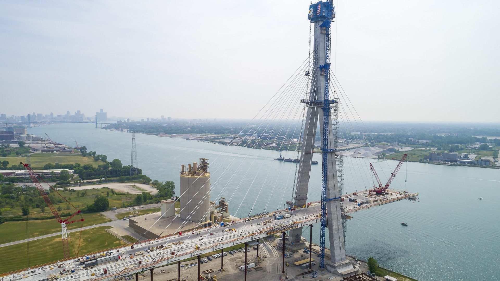 Gordie Howe International Bridge. Windsor, Ontario and Detroit, Michigan. Under construction