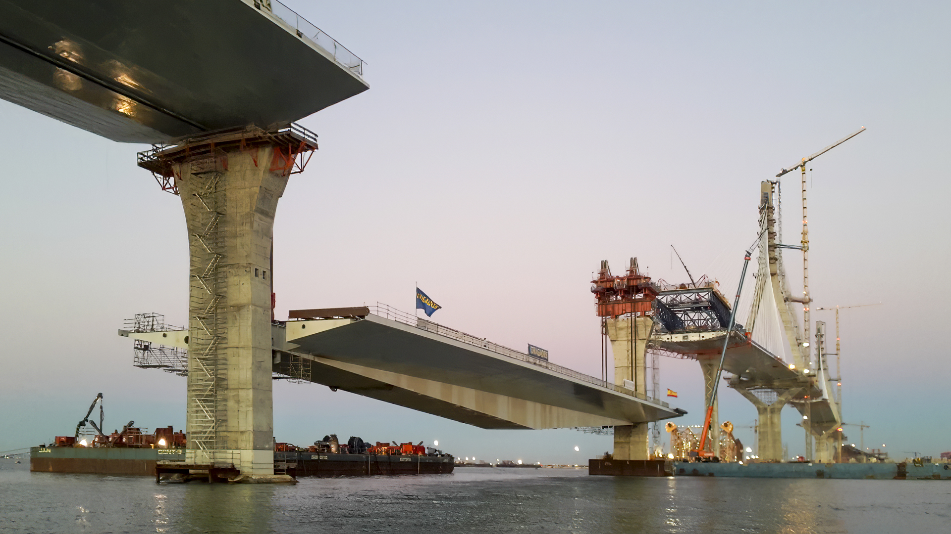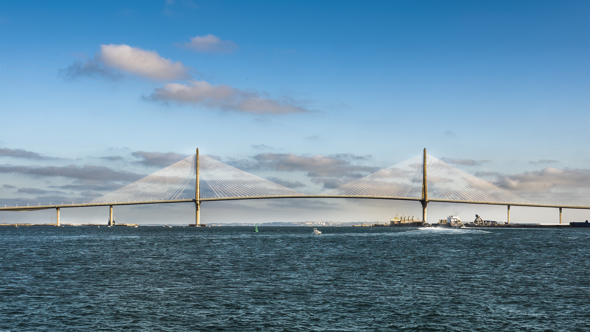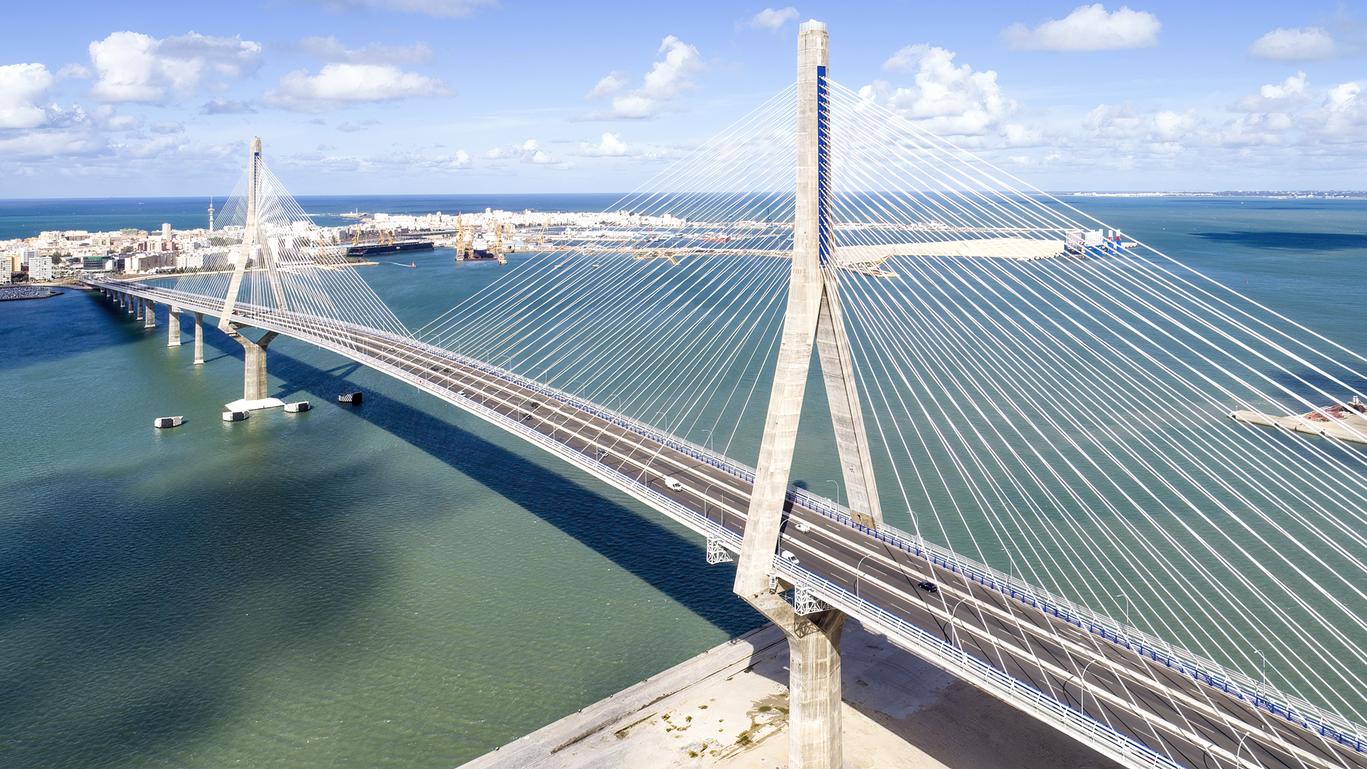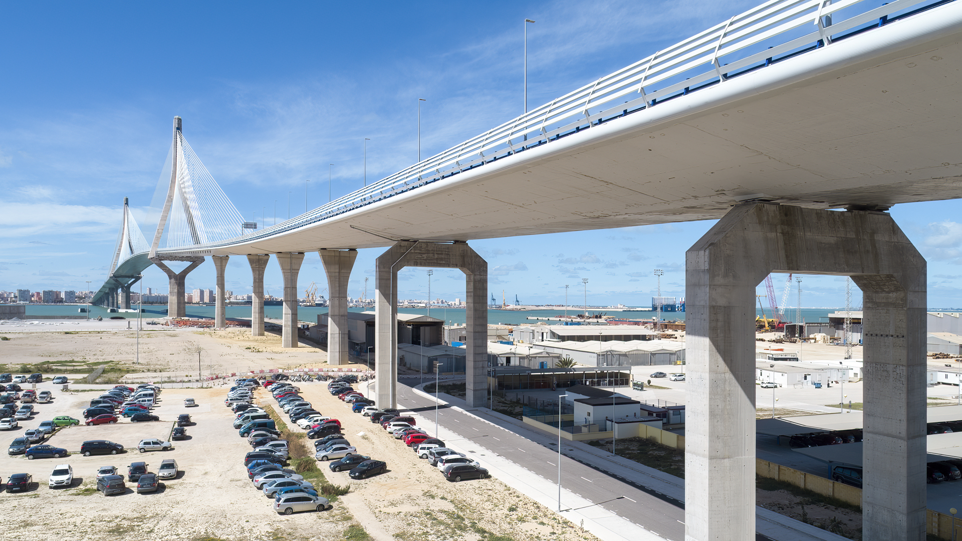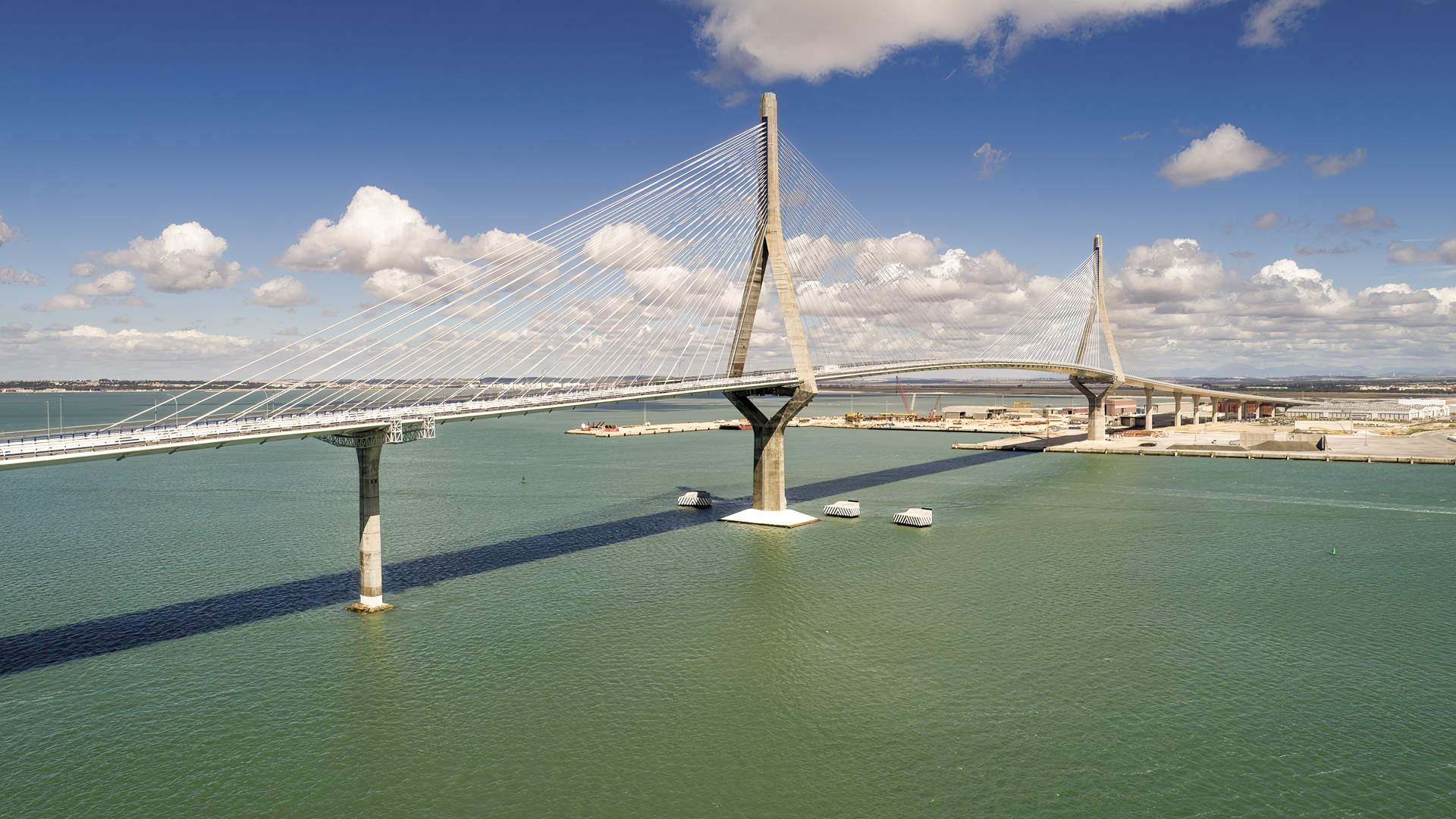 El Puente sobre la Bahía de Cádiz tiene una longitud total de 3092 m y cruza la bahía desde la ciudad de Cádiz hasta Puertorreal. El puente principal es un puente atirantado con una luz principal de 540 m, vanos de compensación de 200 m y un gálibo de navegación de 69 m.