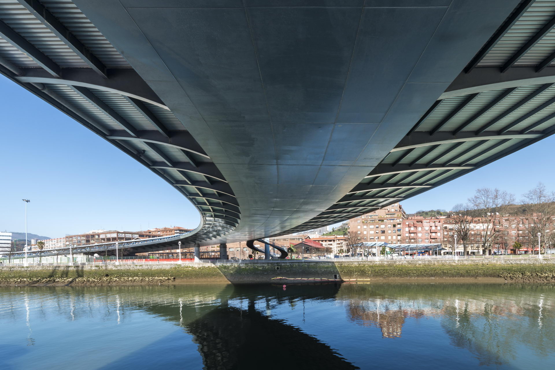 Se trata de un puente curvo constituido por tres vanos de 81,0 m + 106 m + 71 m, siendo el vano principal el que salta la ría de Bilbao, en el centro de la misma ciudad, sobre los antiguos astilleros de Euskalduna.