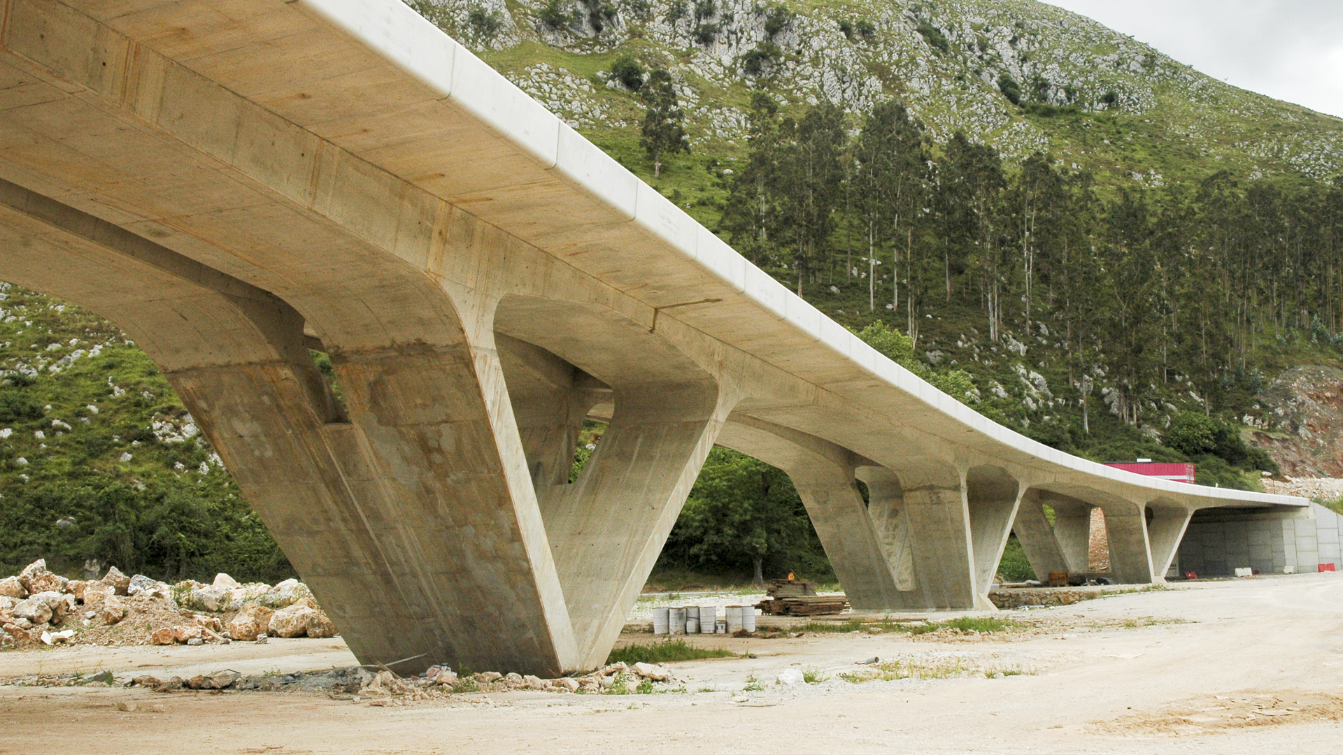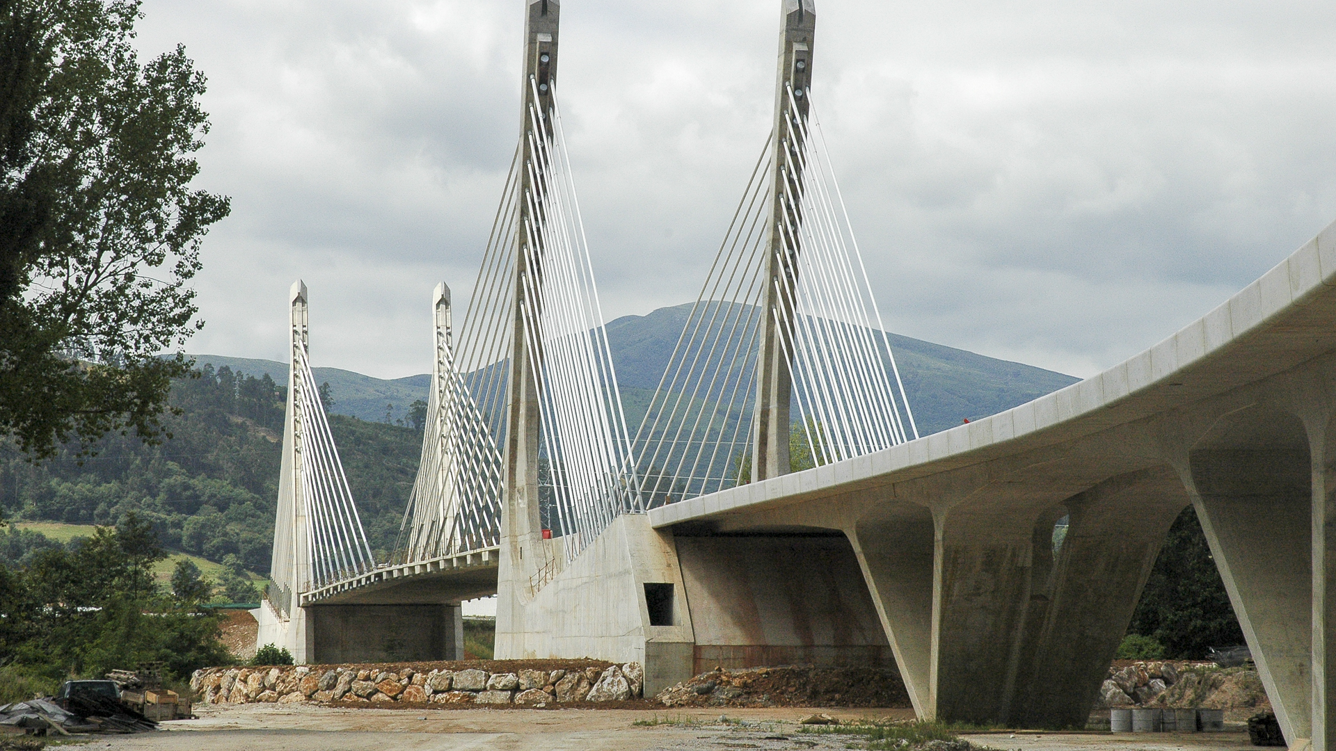 El puente se construyó por voladizos sucesivos hormigonados in situ, utilizando un carro de avance.