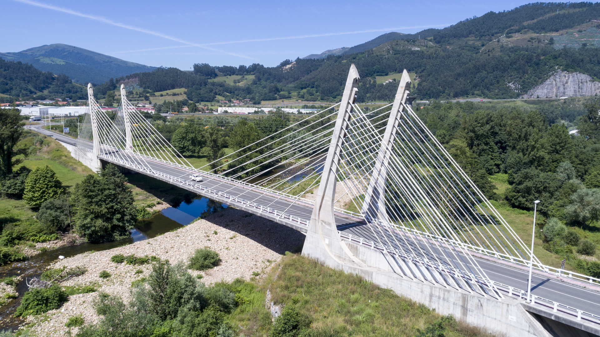 El puente sobre el río Besaya se encuentra en la carretera CA-170 de Cantabria en su tramo de Los Corrales de Buelna a Puente Viesgo. Tiene un vano único atirantado de 134,60 m de luz. Esta configuración estaba determinada por el encauzamiento proyectado en el río, que no permitía situar pilas en él. La luz venía fijada por el ancho del encauzamiento, los caminos de ribera y la oblicuidad del trazado sobre el río.