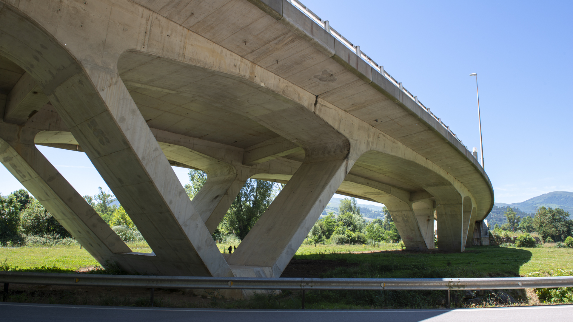 En la separación entre el río Besaya y el arroyo Barcenal está situado el estribo del puente atirantado que se inscribe en una isleta circular