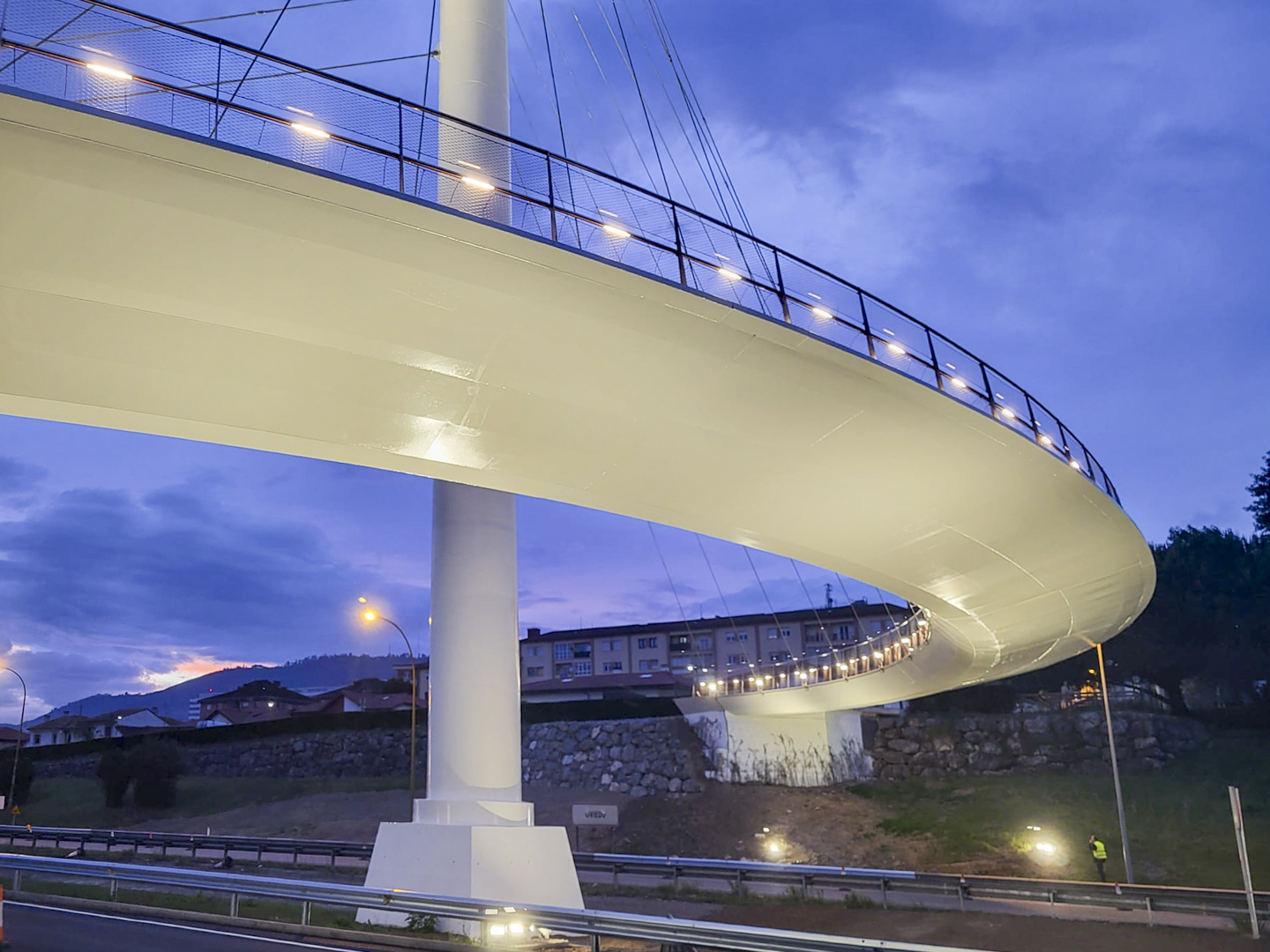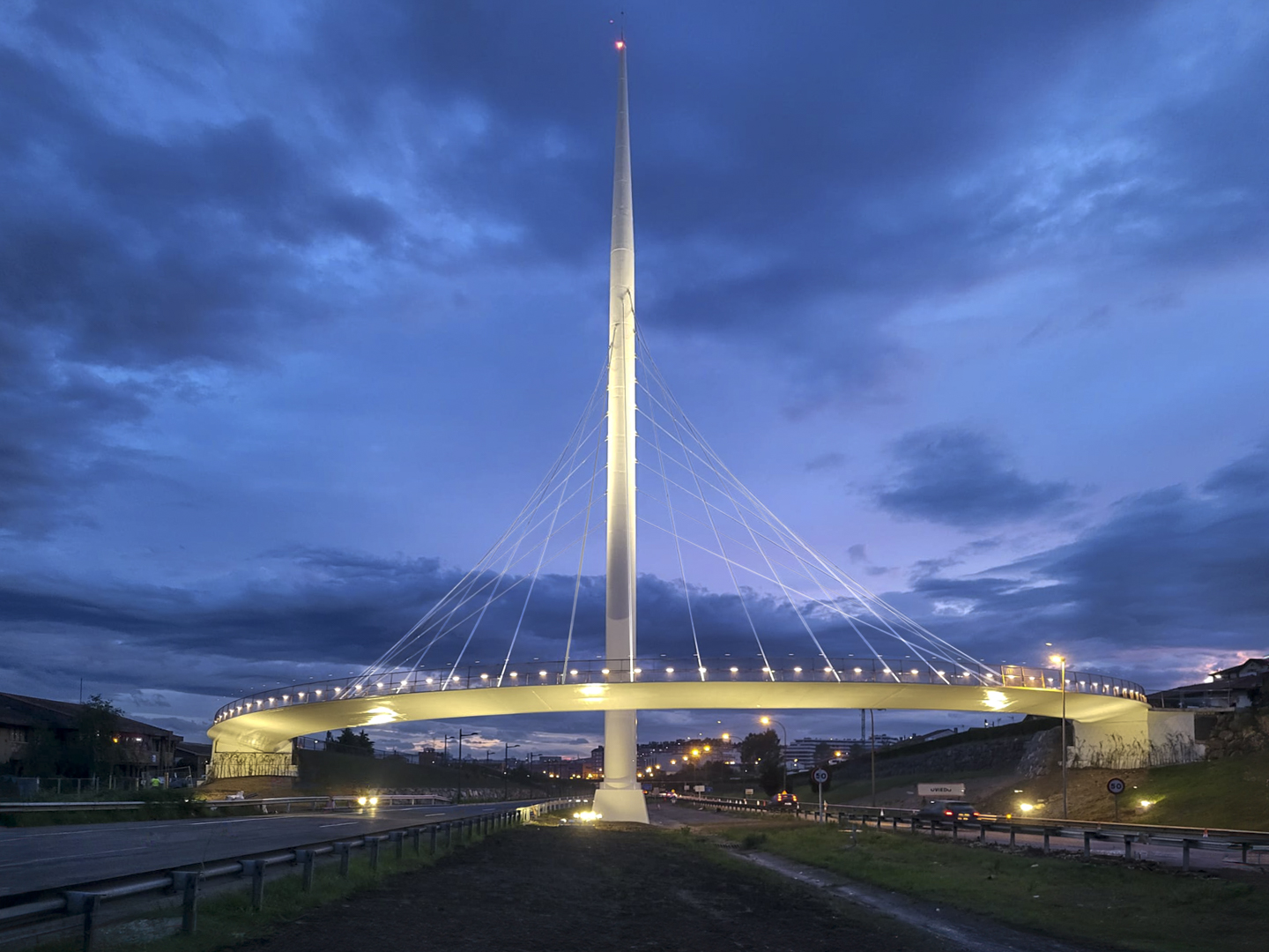 La pasarela de Santullano es una estructura peatonal y ciclista atirantada recientemente construida en Oviedo como parte de la reurbanización del entorno de la A-66 y del nuevo bulevar de San Julián de los Prados. Su trazado curvo de 84,5 metros y su diseño estilizado buscan no solo resolver la conexión entre los barrios de Ventanielles y Teatinos, sino también convertirse en un nuevo icono de acceso a la ciudad, dialogando con elementos patrimoniales cercanos como la iglesia prerrománica de Santullano o el Palacio de los Deportes. El proyecto combina funcionalidad urbana, integración paisajística y un marcado carácter arquitectónico.