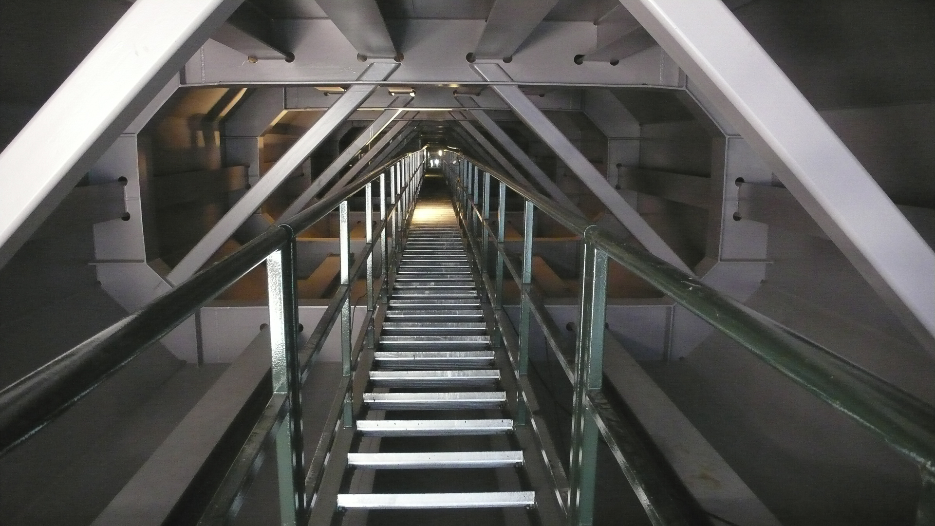 La parte más singular del viaducto lo constituye el vano de 150 m apoyado sobre los dos puntales. Se comparó la solución de hormigón y la metálica en ellos, mostrándose más ventajosa la segunda empleando acero de alta resistencia (S460). En esta situación el peso propio del puntal es poco importante y por tanto la geometría del arco que se genera del antifunicular de las cargas prácticamente resulta el de la carga puntual en clave. Por ello la curvatura de los semiarcos es muy ligera y su aspecto visto frontalmente es el de puntales rectos. La sección es rectangular con esquinas biseladas para crear un efecto de sombras que los perfilen. La chapa típica de las paredes es de 15 mm con rigidizadores longitudinales en T y diafragmas transversales en K cada 4 m.