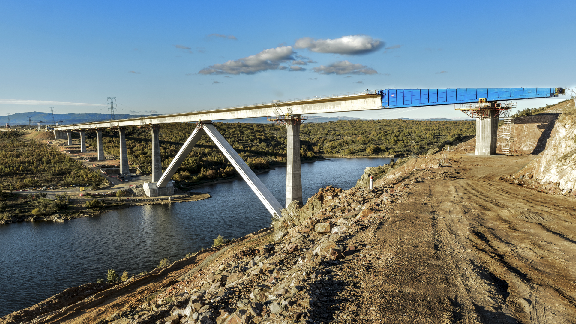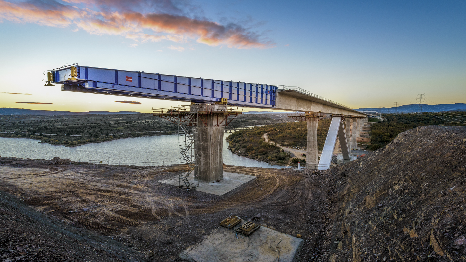 El proceso constructivo del tablero del puente es mediante empuje desde el estribo 2. Las dovelas se son de 25 m; teniendo el parque de fabricación capacidad para 3 dovelas. La nariz de empuje es metálica de 45 m.
