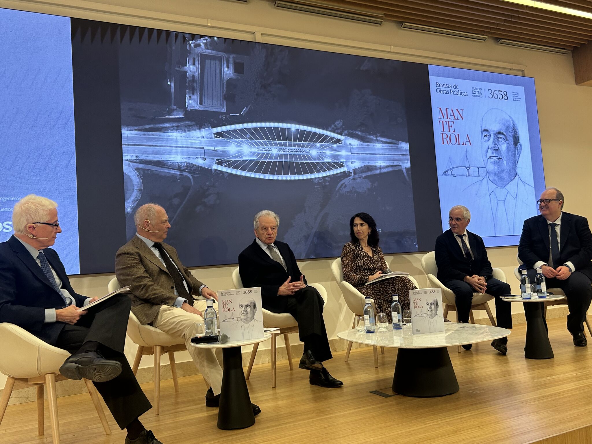 El Colegio de Ingenieros de Caminos, Canales y Puertos presentó ayer el número extraordinario de la Revista de Obras Públicas dedicado al Premio Internacional de Ingeniería Civil y Colegiado de Honor, Javier Manterola.